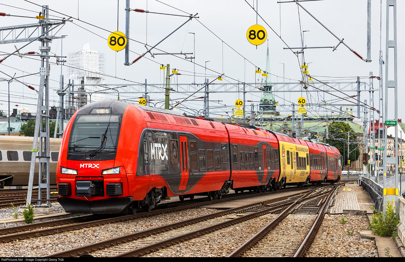 | "Flirt" X74 # 74006 of the MTR is entering Stockholm Central as train 96016 from Gothenburg. The MTR has 6 of this trains for 200 km/h built by StadlerRail in Switzerland in 2014/2015. |