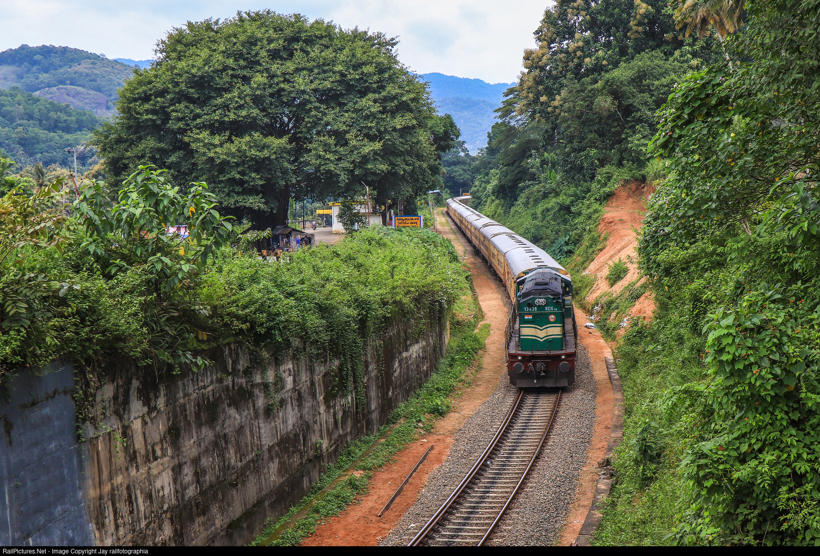 PONMALAI WDG-3A with Chennai Egmore Express slowly descends the Western Ghats, passes old Arayankavu station, on its way to Sengottai