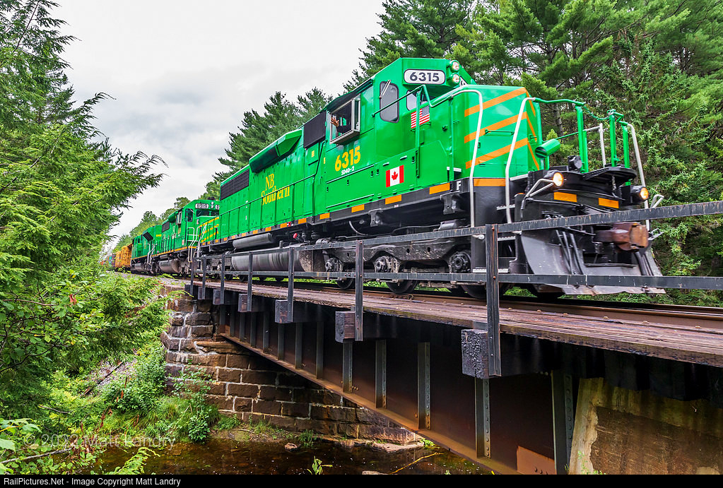 After 10 years on the roster sporting it's maroon colors, NBSR 6315 finally got it's new coat of green NBSR paint, and theyre powering a late, and short, 19 car, train 908 at Welsford, New Brunswick. A friendly wave from the hogger was also a nice touch.