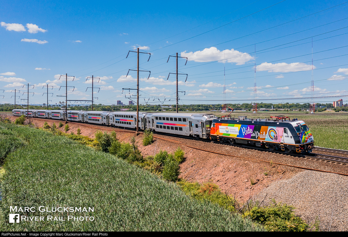 Ride With Pride. On Friday, August 12, 2022, NJ TRANSIT 4609 (ALP-46, Bombardier) made its first trips with the new "Ride With Pride" wrap "to celebrate the LGBTQIA+ Community and its allies", see here crossing the meadows of North Bergen, New Jersey on train 3844, moments away from its final stop at New York Penn Station. Sponsored by Hackensack Meridian Health, the design is similar to that of 2 buses that were wrapped during Pride Month in June and uses the name of the Company Employee Resource Group (CERG) for the LGBTQIA+ Community, Ride with Pride.