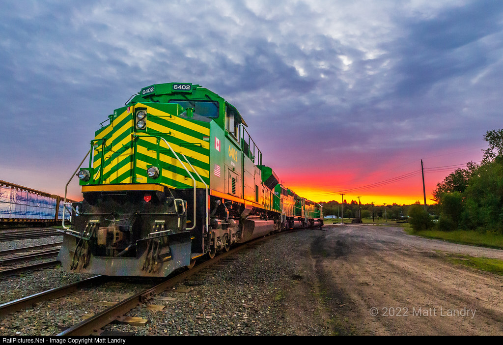 The power for NBSR Train 907-12 sits on the shop pad in McAdam, New Brunswick. Due to various issues the day before, the crew parked the train in McAdam yard and tied the power down at the shop. With a fresh crew, it will continue westbound today, the 13th. I never have this much luck when it comes to sunrise photos, so when this opportunity for a photo op presented itself, I couldn't pass it up.