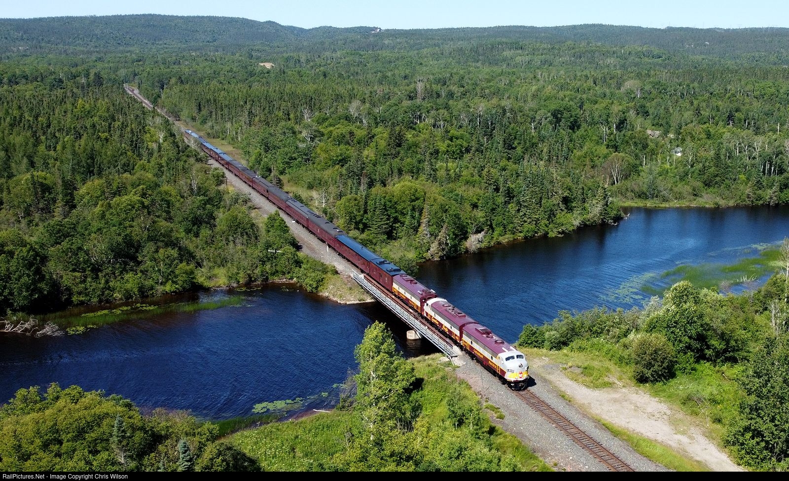 CP's Royal Canadian Pacific crosses Pays Plat River on a beautiful afternoon