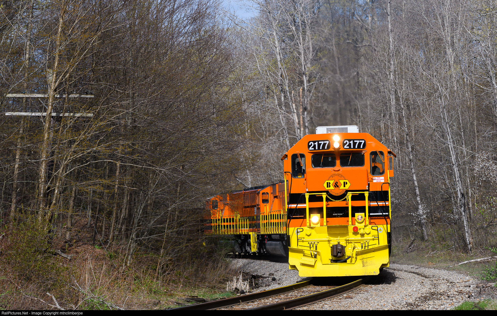 | The roar of EMD prime movers fills the air as a Buffalo & Pittsburgh stone extra grinds its way upgrade as it heads south, swinging through the horseshoe at Droney Curve in Gifford, Pennsylvania. With mainline freights typically dominated by the railroad's SD60's and SD40's, the freshly painted GP38-2 2177 is a welcome leader as it rounds the bend alongside the old code line poles hidden in the trees. |