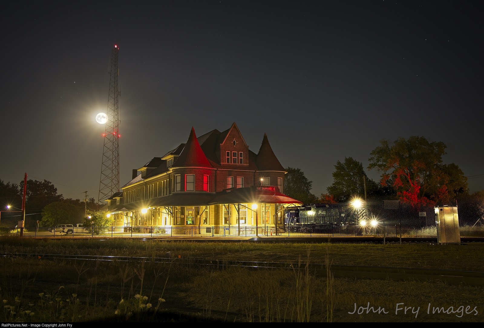 | The Great Lakes Central turn arrives in Durand to work before heading back to Owosso to tie up for the night. Tonight's job features 2 of the ex-Montana Rail Link SD35s. At the same time, the last super moon of 2022 rises above the 117 year old depot. |