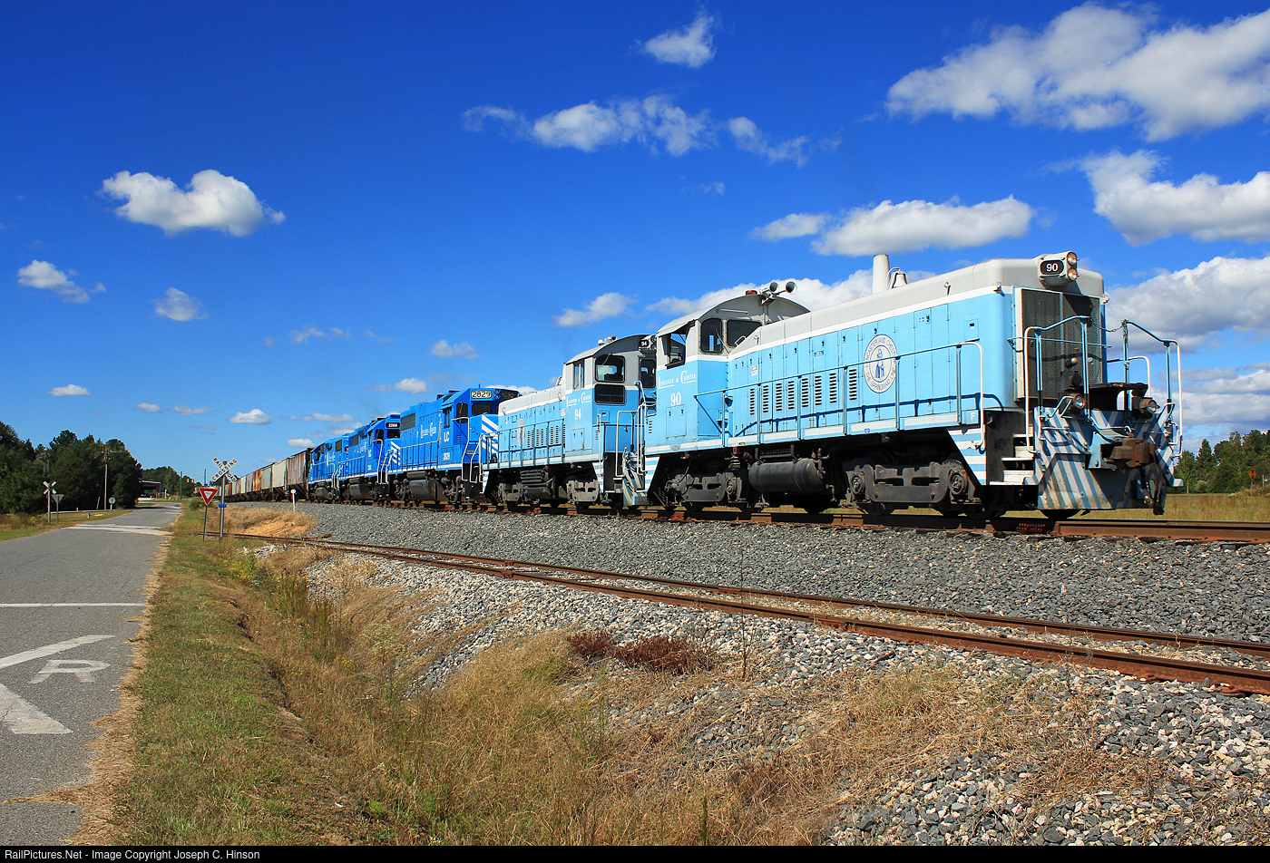 On October 11, 2013, under a Kodachrome Ble sky, five locomotives on the Lancaster and Chester Railroad work the sidings in Richburg, South Carolina back in 2013. They will then head off toward Lancaster and eventually the ADM plant in Kershaw.