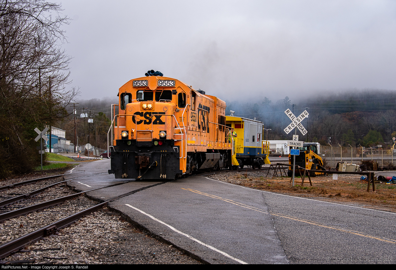 The crew of HRR Y101 begins assembling their MOW train by picking up the shoving platform that'll be used near the ETRC Office. The 9553 is a General Electric U23B built as Louisville & Nashville 2817 in March of 1975. It would eventually wind up its Class 1 career with successor company CSX in maintenance-of-way service before being acquired by Vintage Locomotives, Incorporated.