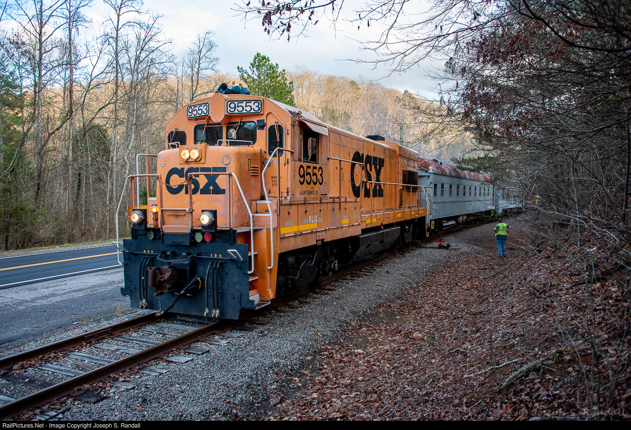 Heritage Railroad Y101 departs the 327 siding. The 9553 is a General Electric U23B built as Louisville & Nashville 2817 in March of 1975. It would eventually wind up its Class 1 career with successor company CSX in maintenance-of-way service before being acquired by Vintage Locomotives, Incorporated.