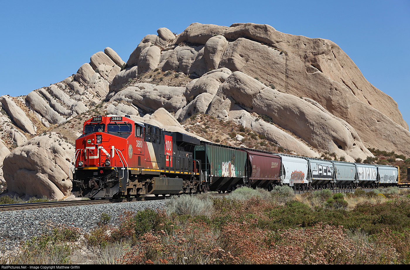 Southern California has been a recent hangout for CN 3880 over that last week. Here it is again on the rear of a NB MWCOG on the Palmdale Cutoff just north of Canyon.