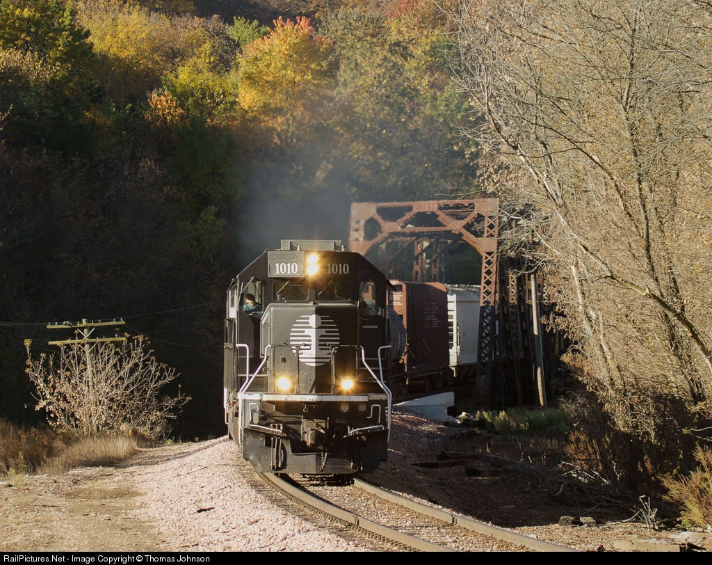 | Daily freight train from Waterloo, IA - Chicago, IL climbing the hill towards Scales Mound, IL. |