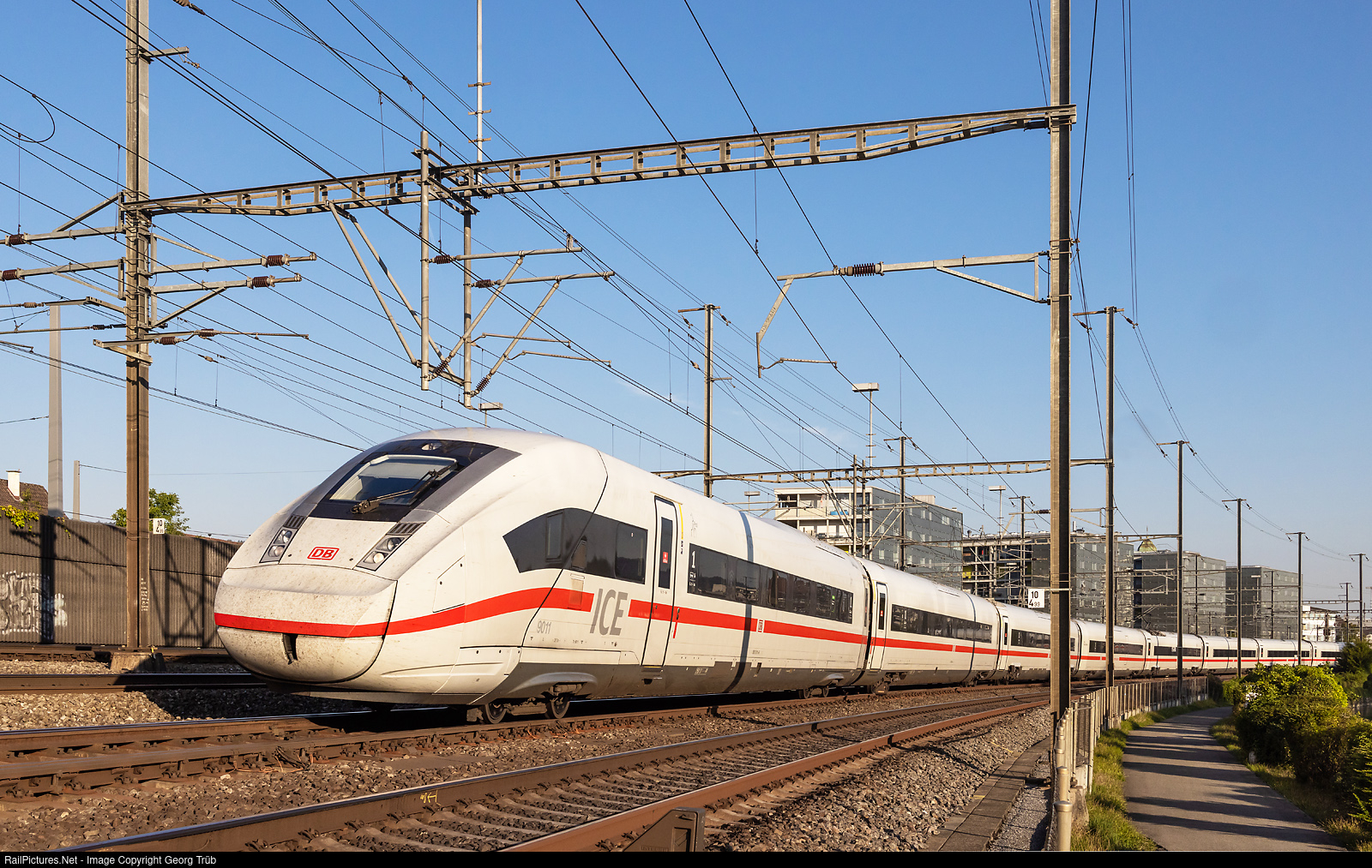 | ICE 4 # 9011 of the Deutsche Bahn is running the ICE 1253 of the line IC 3 from Basel via Zürich to Chur, through Dietikon. |