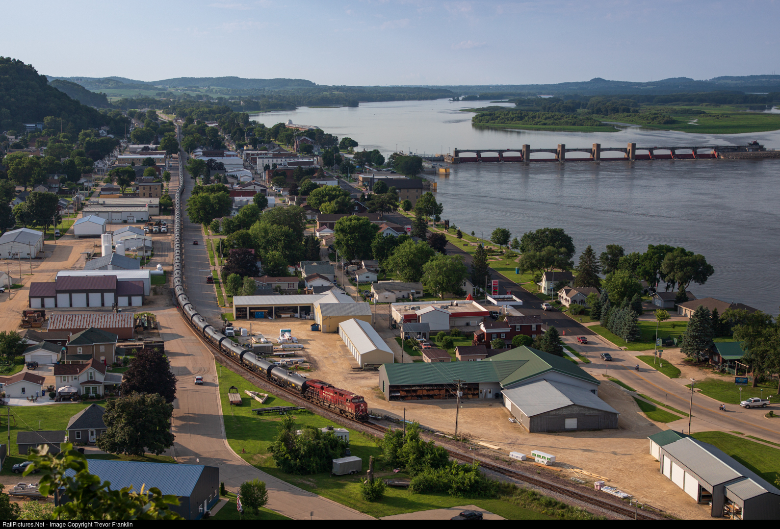 | Ethanol loads creep through the street-running in Bellevue, kissed by the setting sun on a quiet Sunday evening along the Mississippi in small-town Iowa. |