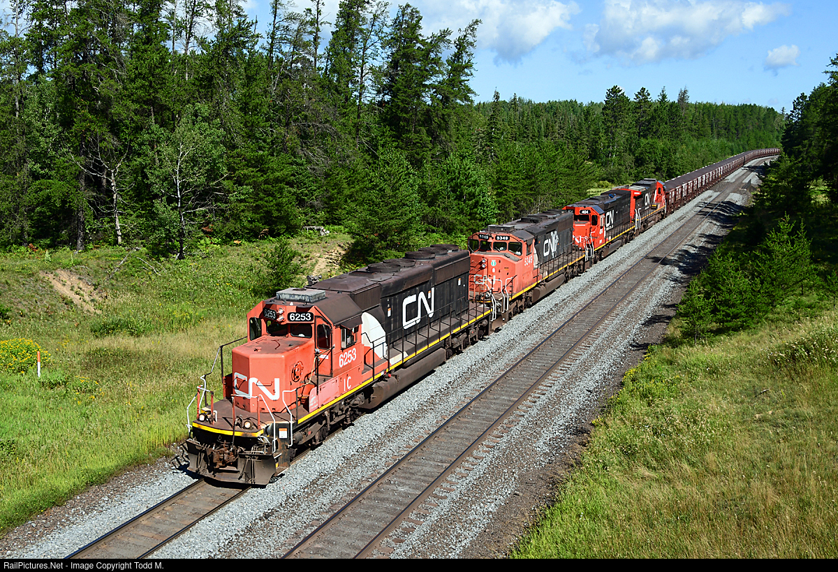 | IC 6253, CN 5349, DMIR 404 and finally CN 2004 backhaul forty-eight loads of pellet chips and fines down from Minntac after delivering forty-eight loads of limestone to the plant.