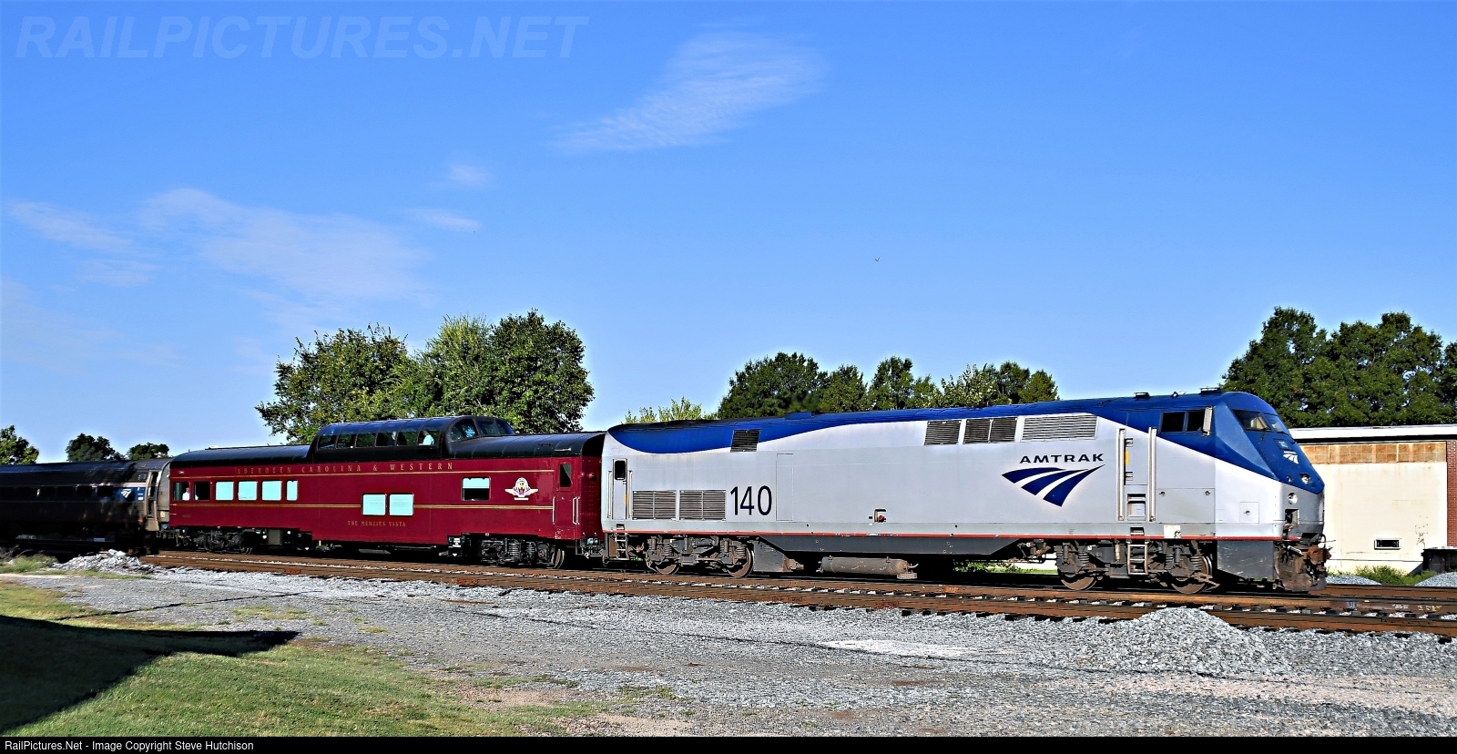 Tucked in behind #140 is Aberdeen Carolina & Western office car, The Menzies Vista. Mr. Robert Menzies is Owner and Chairman of the Aberdeen Carolina & Western Railway Company located in Candor NC. The Menzies Vista is ex Union Pacific. |