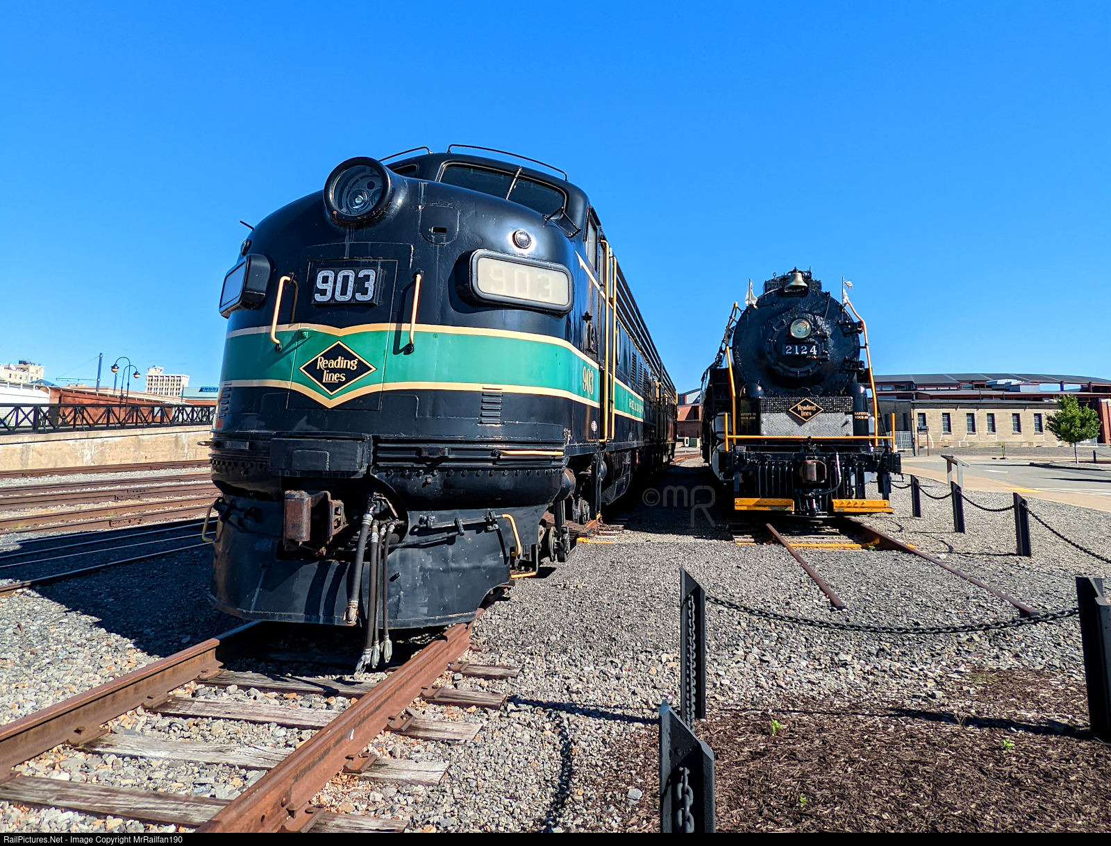 Another Reading Northern: After spending the morning observing 2102 put on a grand performance in the second-to-last of the year's "Rambles", it was bittersweet to find myself standing beside the loco's long-silenced sibling, T1 No. 2124, later that same afternoon. Though well-cared for and lovingly preserved, it was all too clear just what this powerful machine was once capable of. Posed beside some of the very diesels that helped bring about its silence, it now stands as a marker of the force of technological progress.