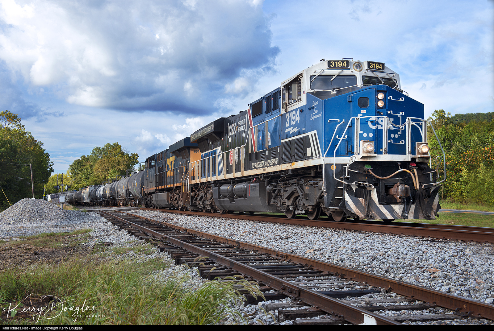 “The Dalton Turn,” CSX L806-30 (ex: A704) is easing south through Ringgold, GA heading to the Carpet Capitol Dalton, GA to set-off, and pick-up cars before heading back north for Chattanooga. To a lot of folks surprised CSXT 3194 "Law Enforcement" Unit was assigned to this road local job at the last minute. Both units came south the night before assigned to M585-29 and were pulled from today M584. Most of us were hoping that this pair would stay on the L806 for a while, but the following day it was sent back north for Nashville, TN.