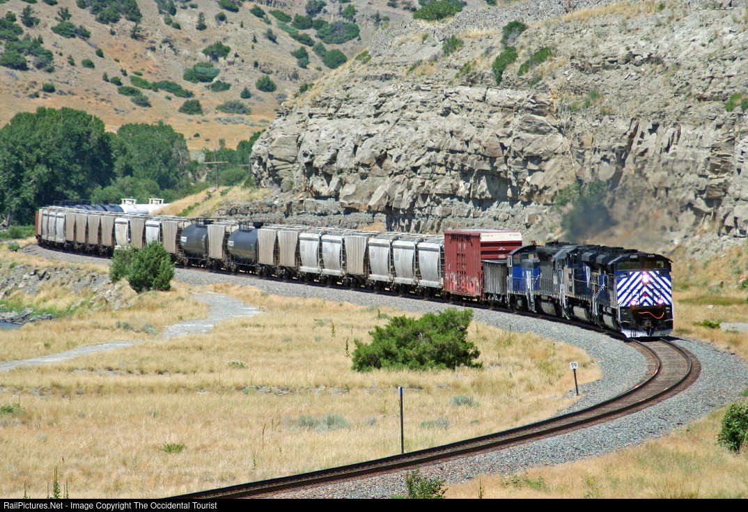 Hugging the Yellowstone River, "LM" makes its way towards Livingston with an interesting set of power, the third unit was going to the Eastern Washington Gateway ops.