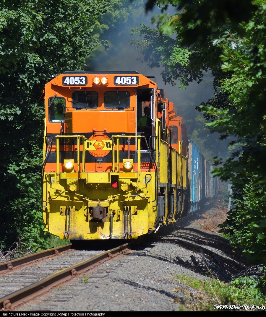 On the first of September, four Providence & Worcester C40-8s take 32 hoppers uphill towards Williams Road in Wallingford. These cars were loaded a few miles to the north at Tilcons Reeds Gap Quarry. Once the train arrives at Cedar Hill Yard, the crew will finish putting together this train, which will run later tonight as CHFP to Queens, NY.