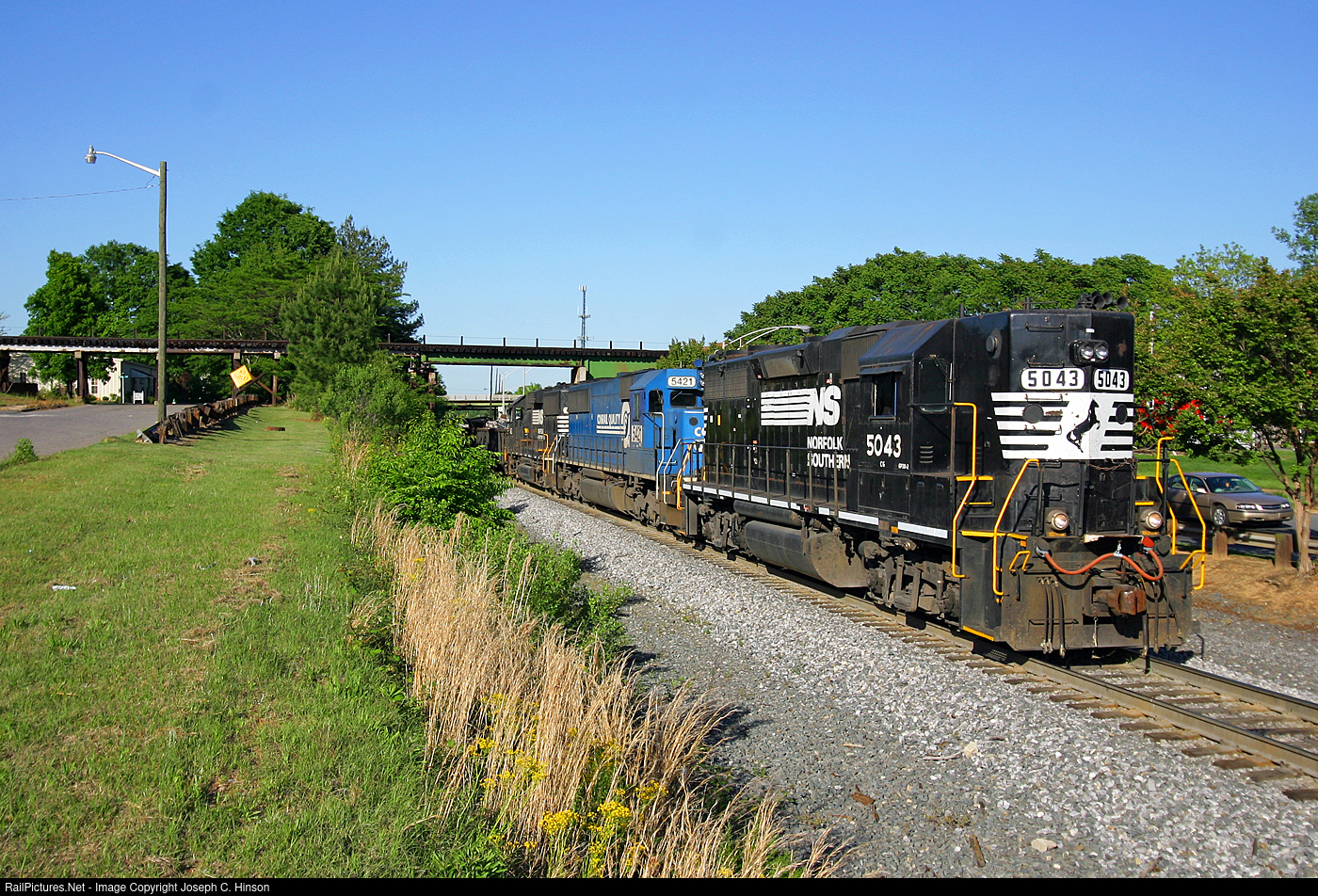 | Four axle GP38-2 #5043 is seen here in 2006 leading Norfolk Southern train 337 through some switching moves in Rock Hill, South Carolina. This locomotive was sold at auction by NS in 2016 to LTE Rail Services. |