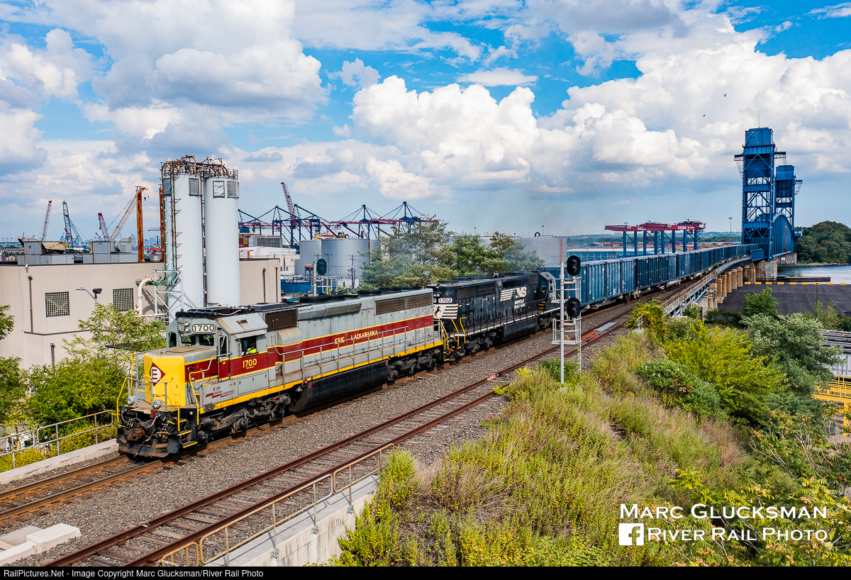 Out Of Captivity. After spending almost a year working inside the confines of Oak Island Yard in Newark, NJ, Norfolk Southern Corp 1700 (ex-Conrail 6654, née EL 3669, SD45-2, Erie Lackawanna Tribute) was out on the road on Conrail Shared Assets Train BY-1 on Tuesday, August 23, 2022. Paired with NS 1702 (ex-CR 6659, née-EL 3674, SD45-2) in the regular NS paint scheme, the two have been together since being built by EMD in 1972. NS 1700 was repainted into the EL paint scheme in 2015, and has since been assigned to Conrail Shared Assets. After spending many years primarily assigned to OI-16 or PR-32 and working on the Chemical Coast Line, it does not have the proper PTC equipment to run on the New Jersey Transit Newark Division, and has recently been assigned to other jobs. It is seen crossing the former Baltimore and Ohio Railroad AK Bridge (Arthur Kills) from Staten Island, New York into Elizabeth, New Jersey.