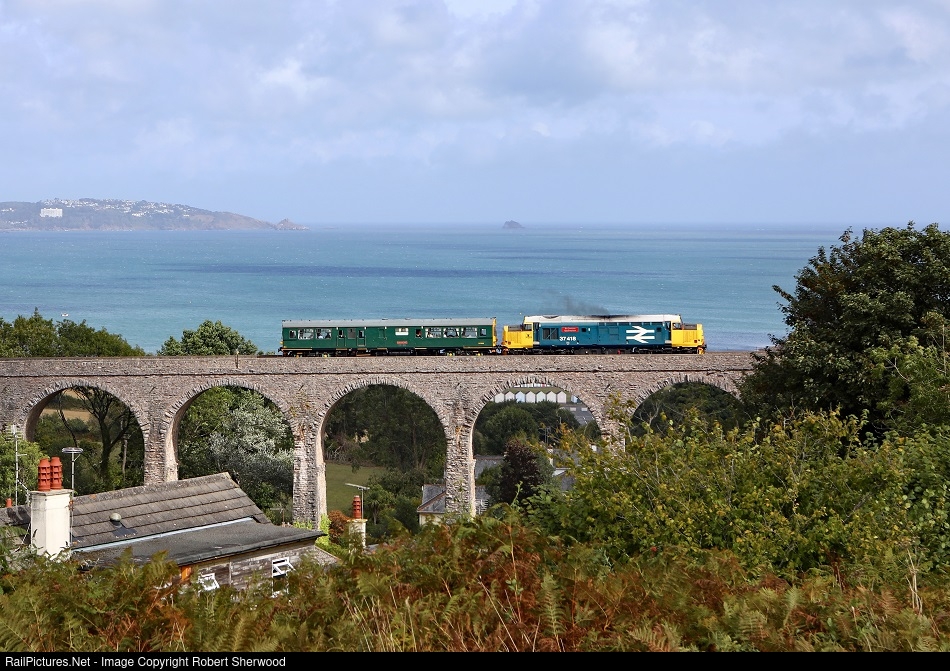 | 37418 hauls inspection saloon Caroline over Hookhills Viaduct working 2Z03 10:29 Fowey Dock Carne Point to Kingswear on Wednesday 7th September 2022 |
