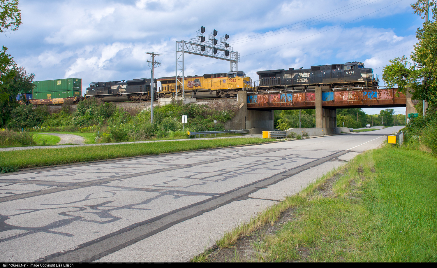 NS train 28M crosses the Baumhart Road overpass bridge and enters Lorain, Ohio. This bridge was originally painted red, white, and blue for the bicentennial year. While I'm impressed that there's any paint left after 45+ years, I do wish they would touch it up or repaint.