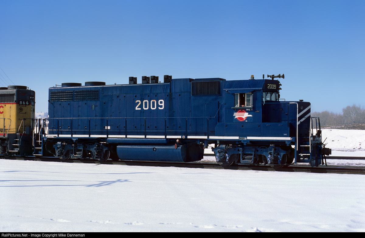 Electro-Motive Division built a total of 2,222 GP38-2s for 59 railroads in the U.S., Canada and Mexico, making the model a best seller. Several hundred of them were customized to railroad specifications, such as Missouri Pacific’s request for a four stack exhaust system. On February 23, 1985, MP GP38-2 No. 2009 leading an Ogden to Salt Lake City Union Pacific freight, departs Ogden, Utah.