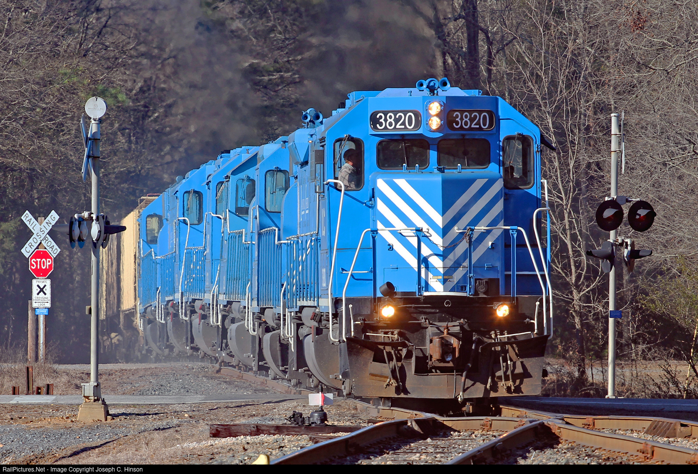 I shot the Lancaster and Chester crossing Main Street in Richburg, SC with a grain train bound for Circle S Feed Mill in 2014. They are using six GP38-2 locomotives led by L&C GP38AC #3820 which has since left the roster.