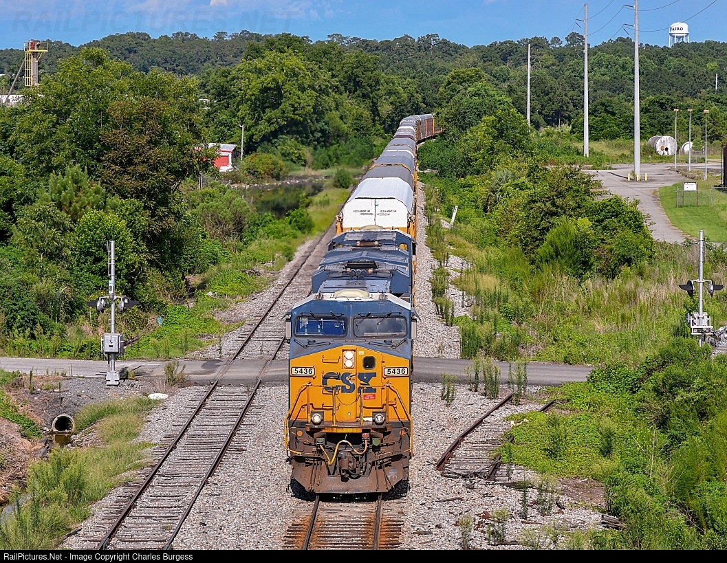 With a fresh crew on board, an empty autorack train is about to cruise under the 5th Street overpass in downtown Cairo, Georgia. This train runs daily between Sanford, Florida and Louisville, Kentucky and works a Hyundai plant in Alabama and a Kia plant in Georgia along the way.