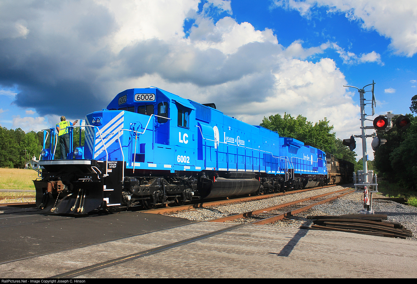 Originally Southern Pacific 8257 (built 5/1980) future LC 6002 then became Union Pacfic #8802 before being bought by Gulf & Ohio Railways and assigned to the Yadkin Valley Railroad as YVRR #6002 before eventually moving it to the L&C. |