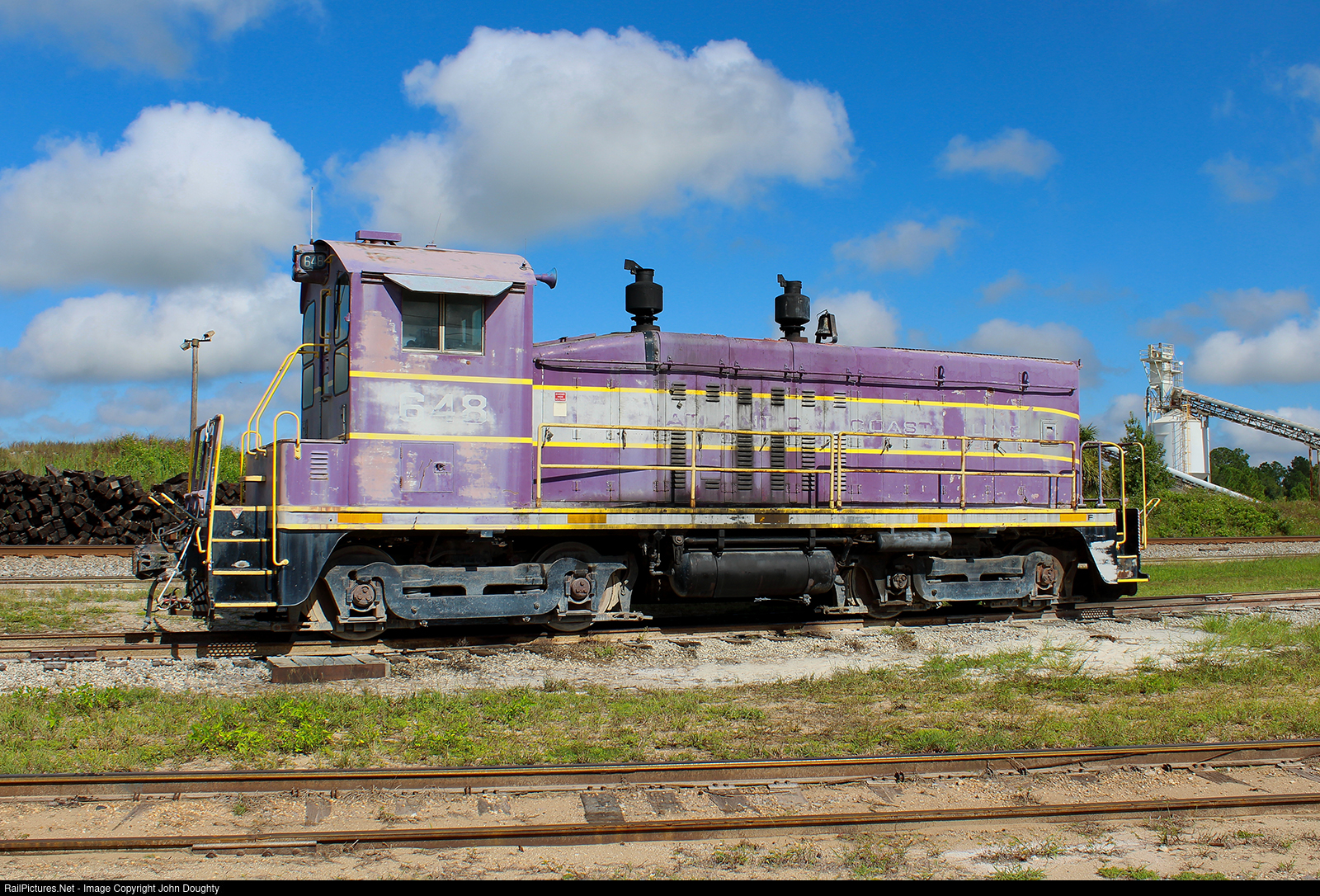 Atlantic Coast Line SW7 number 648 could use a little touch up on the paint as it idles outside the Cemex Sand Mine near Davenport, Florida.