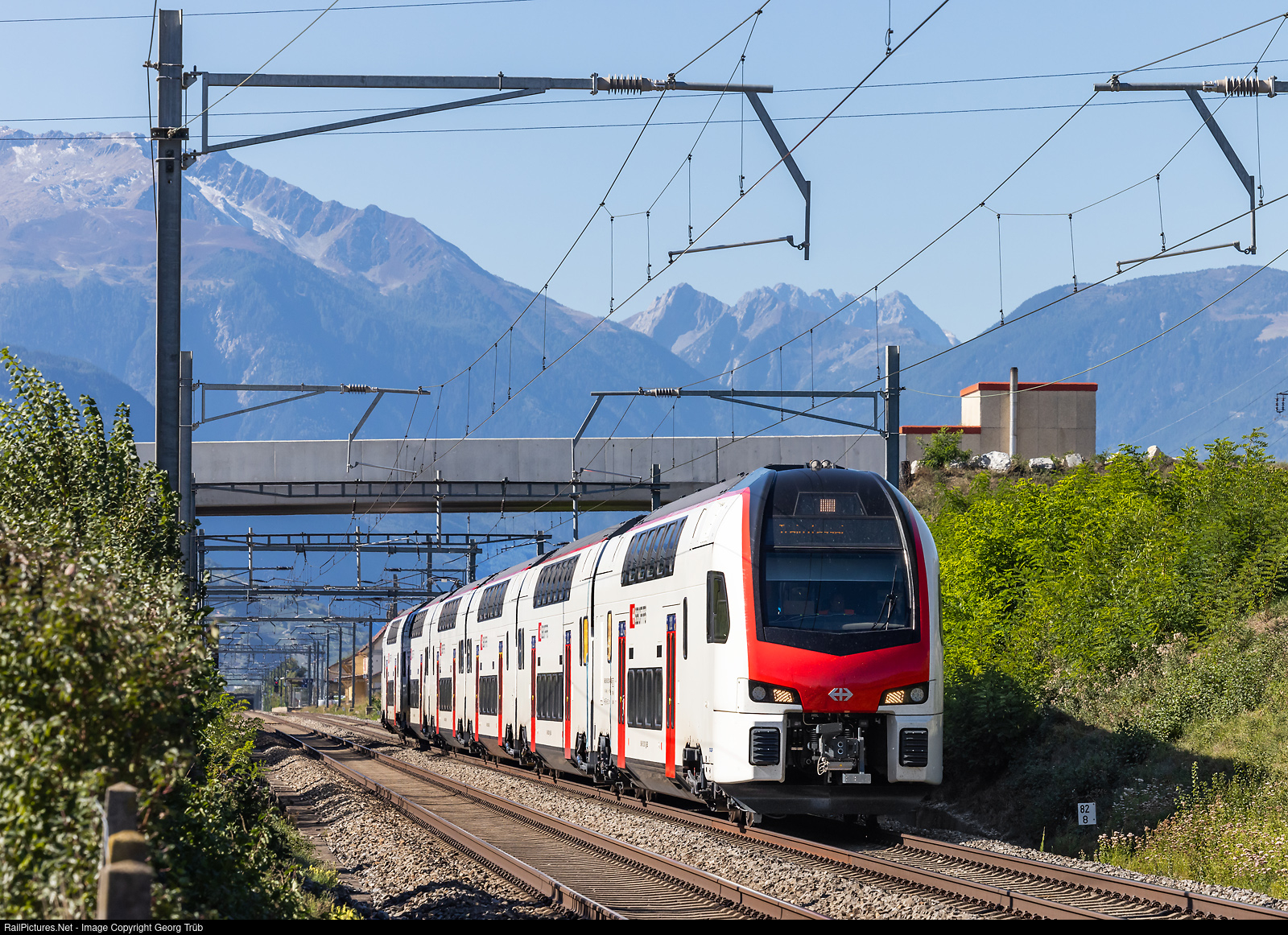 New 6-car doubledeck train for Interregio services, built by StadlerRail for the SBB, on a test run from Martigny to Ardon, at Chamoson-St-Pierre-de-Clages. RABe 512 # 001 is the first of a series of 60 trains, ordered in mai 2021.