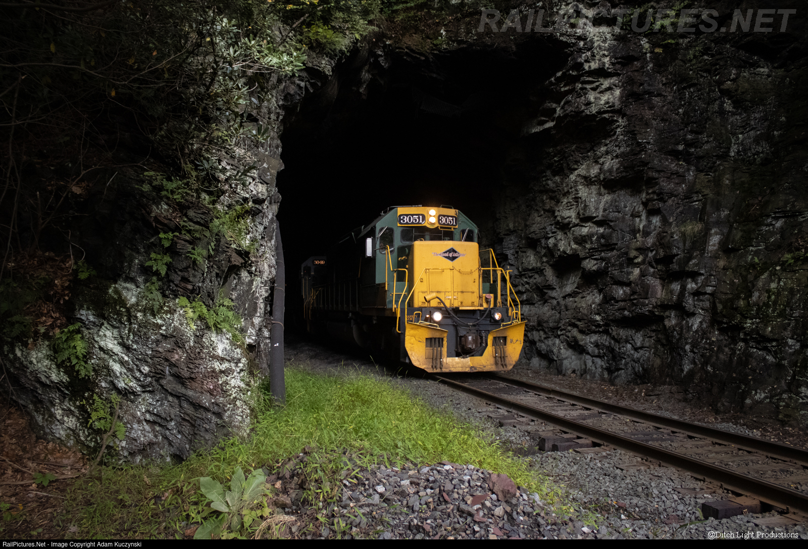 RBMN 3051 leading the NRFF on a sunny afternoon out of the north portal of Tamaqua Tunnel.