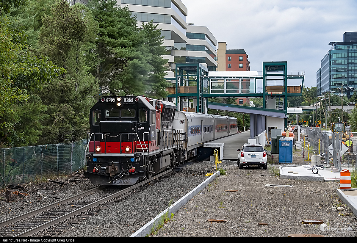 On September 9th, 2022, CDOT BL20GHM #125 leads Metro-North train 1812 past the new Merritt 7 station complex taking shape on the Danbury Branch in Norwalk, CT. This new station will replace the old low-level platform just south of this location.