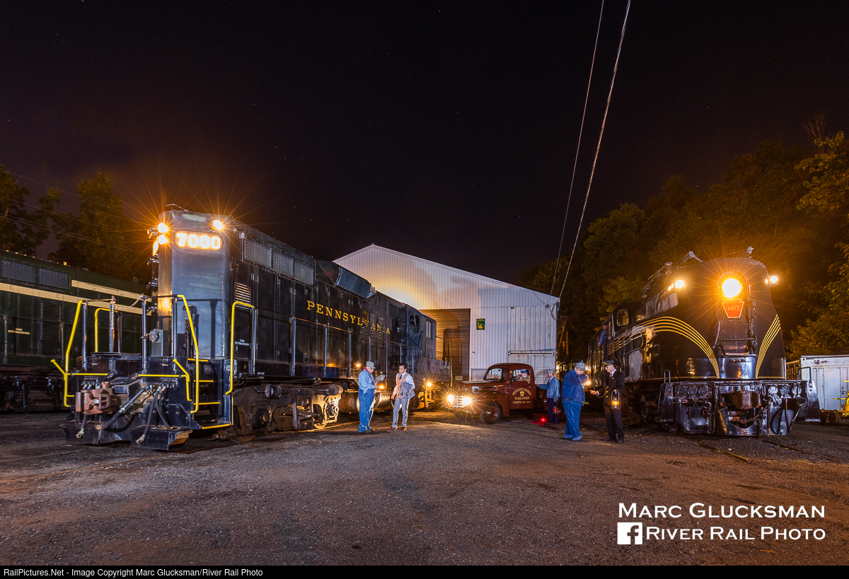 The Standard Railroad Of The World In The Garden State. With former Pennsylvania Railroad GP9 7000 returned from its extended lease to Cape May Seashore Lines in Tuckahoe, New Jersey to the United Railroad Historical Society of NJ in Boonton, New Jersey, it was a natural choice to pose with GG-1 4877 a the night shoot ahead of the “Museum For A Day” event on Saturday, September 24, 2022. A number of volunteers dressed in period railroad clothing with lanterns and stood in the scene to add to the atmosphere.