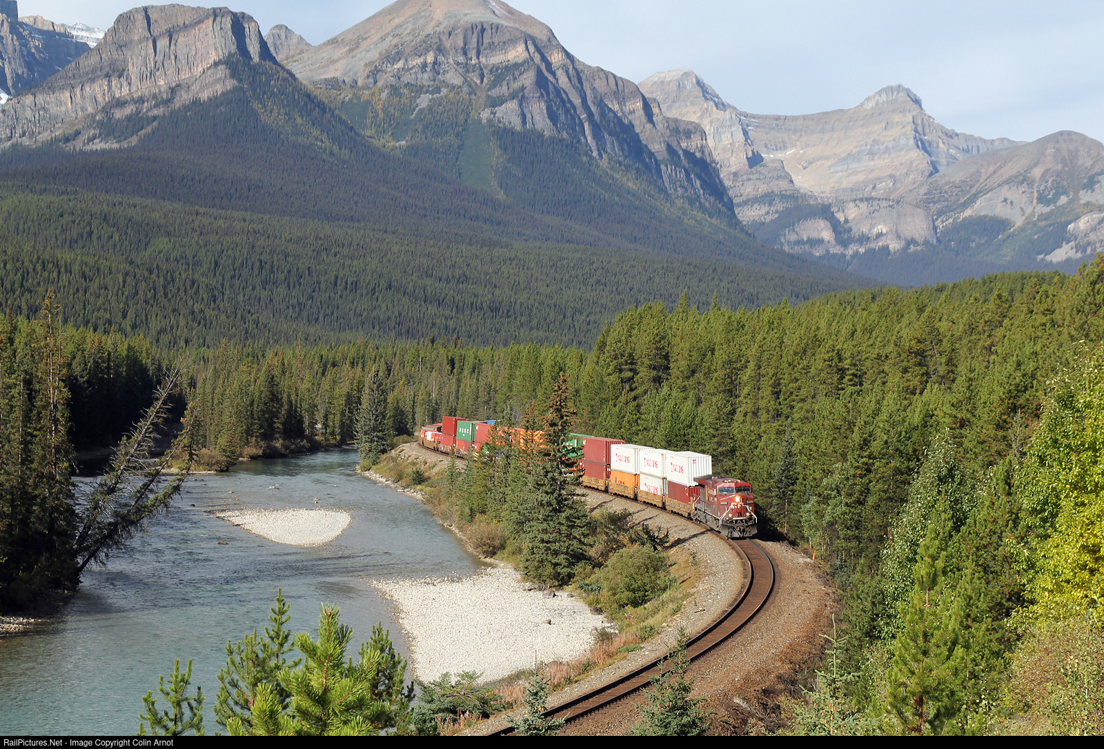 CP 8626 heads an eastbound intermodal around Morant's Curve and into the Bow River Valley on CP's Laggan Sub.