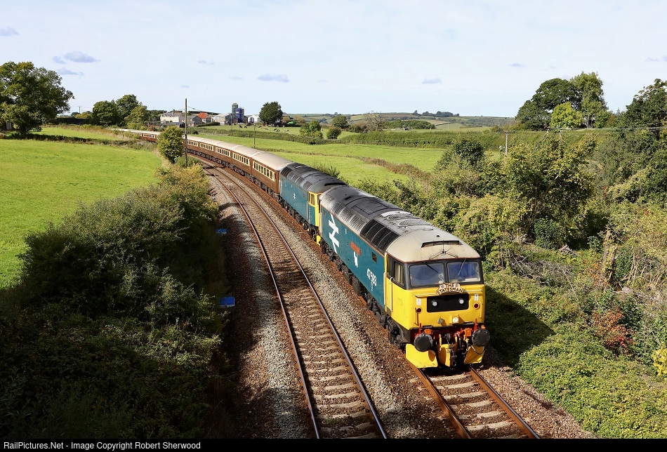 47593 and 47614 haul 1Z28 09:37 Penzance to York 'Cornish Explorer Statesman' past Follaton on Sunday 25th September 2022