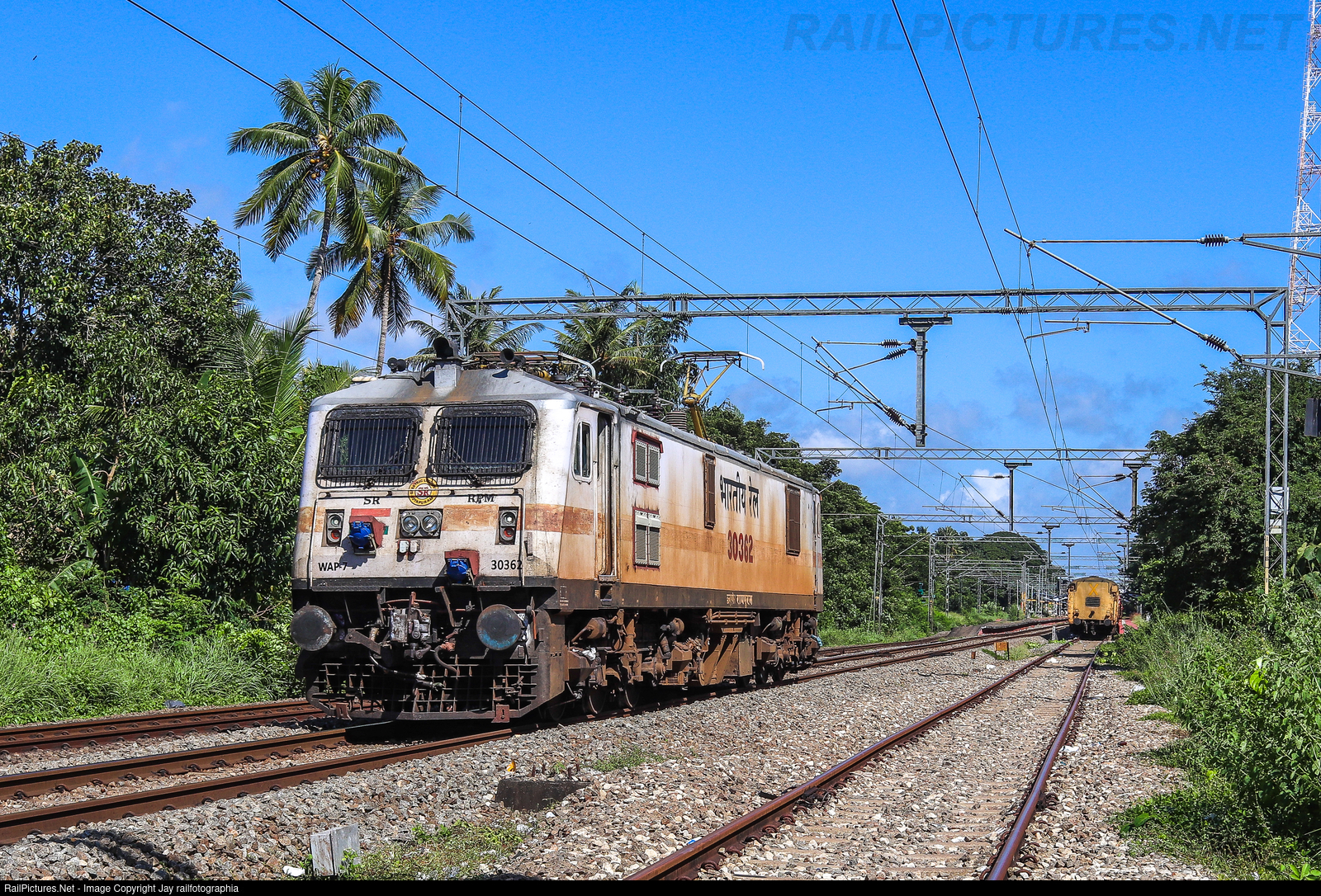 Old ROYAPURAM WAP-7 with fainted colors and hotel load port placed in a very strange way, diagonally, moving towards some siding