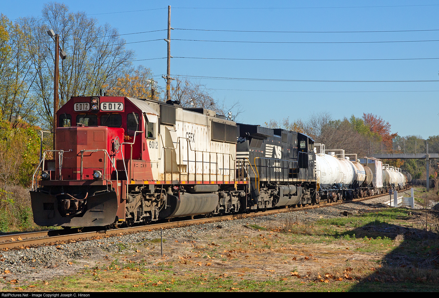 On December 2, 2011, Norfolk Southern Railway Train 155 prepares to stop in Columbia, South Carolina for a crew change before heading southward with former Soo Line SD60 #6012 leading. It was built for the Soo Line in 1987 before becoming an Indiana Railway locomotive and finally a lease locomotive for CIT Group/Capital Finance, or CEFX for short.