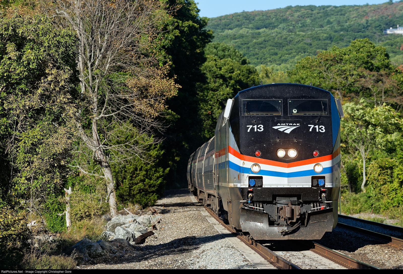 RailPictures.Net Photo: AMTK 713 Amtrak GE P32AC-DM at Manitou, New York by Christopher Gore