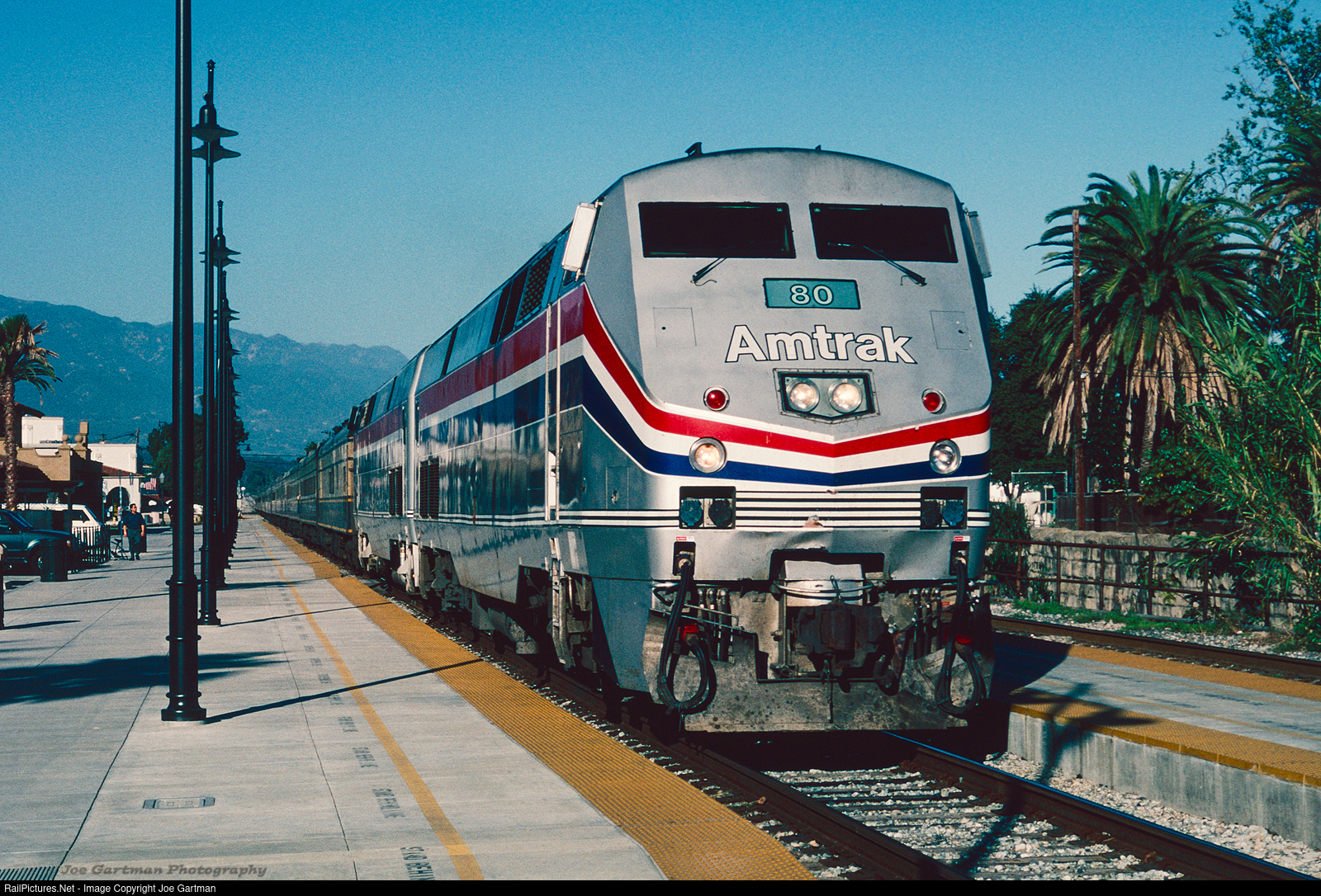 | Fresh out of the day's college classes and unaware of the American Orient Express' trip from Los Angeles to Seattle, I swung by the Depot at Santa Barbara to take advantage of the nice afternoon light. First though as the train approached was that #14 was running late. I was quite surprised when the AOE pulled up. |