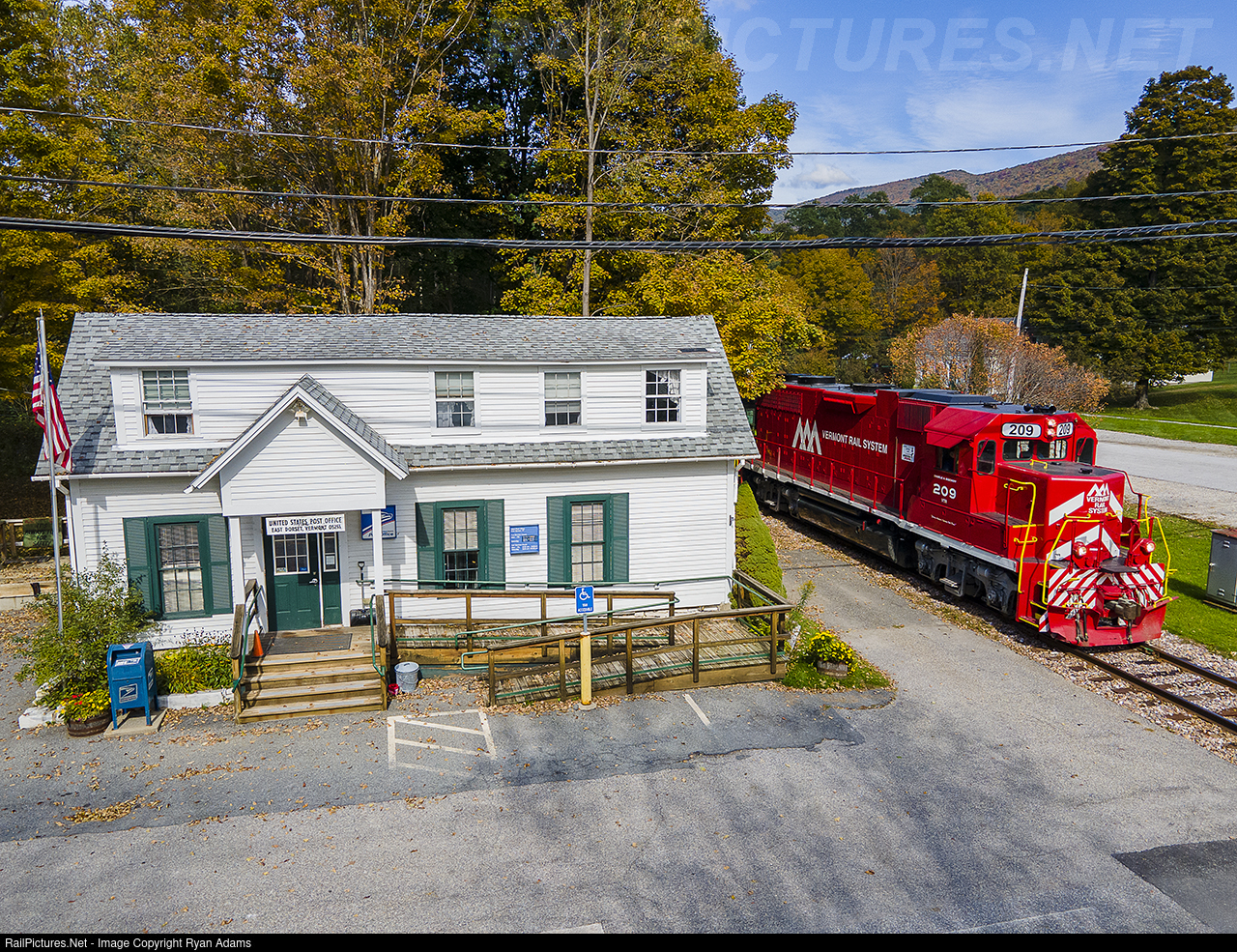 The picturesque East Dorset post office is a favorite among many railfans. The VTR 209 leads past this post office as its en route to N. Bennington with the 2022 AAPRCO American Autumn Explorer.