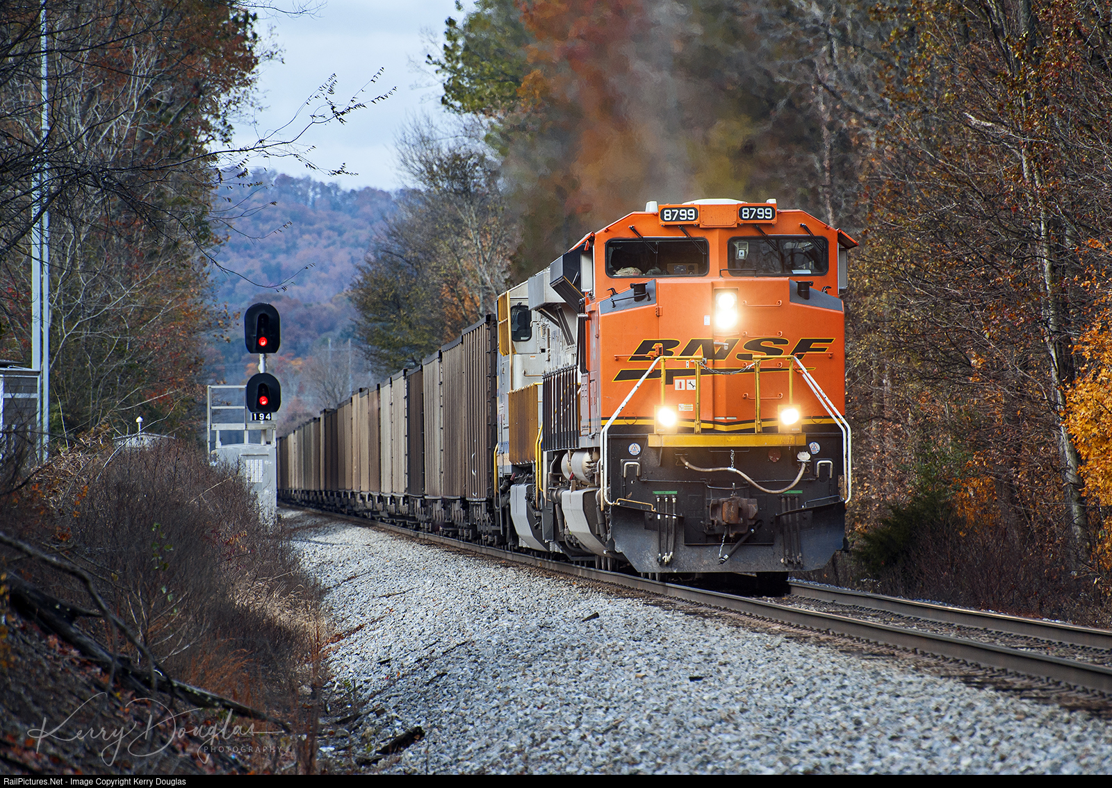 After waiting at the end of the double track main in Ooltewah, TN the loaded coal bucket NS 732 (Memphis,TN/BNSF-Juliette,GA) has knocked down the absolute signal at Apison, TN (MP-19.4) and is making the charge at the bottom of Howardsville Mountain. The loaded train is heading for Georgia Power Plant Scherer just ahead of the arctic cold weather that was going to make a dip into the southeast region the following day in mid-November. Fall in the Southeast is typically mid, but this particular year fall came in a little cooler than normal with average high lingering in the mid to lower 40s, and the lows in the mid 20s. The customer that receives power from plant Scherer has something to be thankful for especially in the coming cold nights ahead.