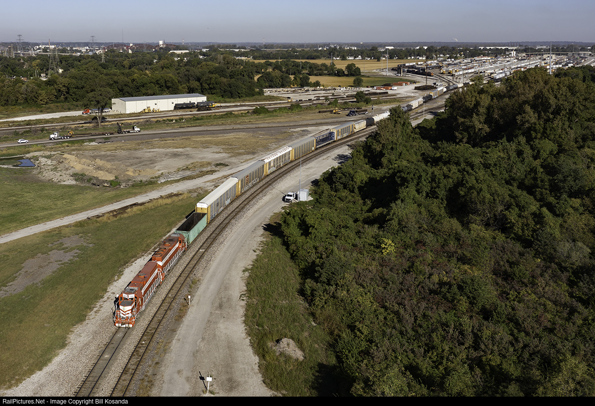 A Terminal Railroad GP40M-3 and slug are seen sorting cars at the south end of the TRRA yard at Madison, Illinois