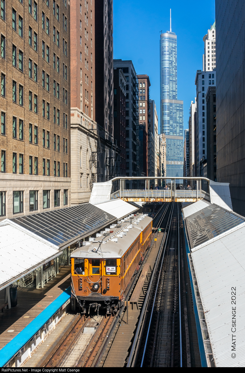 Chicago's Old and New. Chicago Transit Authority (CTA) 4000-Series car no. 4271 (Cincinnati Car Co., 1914-1924) is seen arriving at Adams/Wabash Station on the Union Loop while running special loop shuttles in celebration of the CTA's 75th anniversary on October 1, 2022.