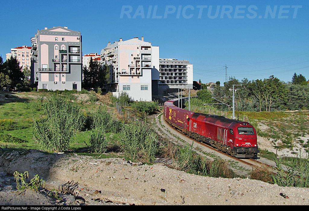 A Takargo freight train from Fuentes d'Oñoro (Spain) to Entroncamento (Portugal).