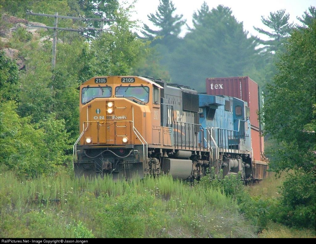 ON 2105 Leads ex. LMS now CSX 7923 and Containers Northbound. Very rare to see ONR power pulling Stacks.