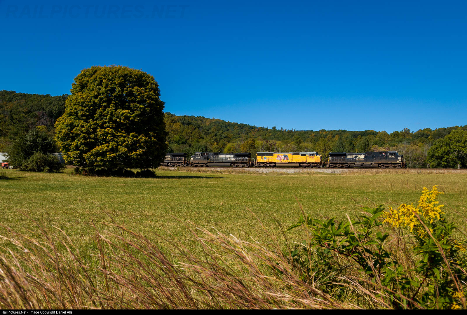 | With a classic lash up of three dash 9's and a UP SD70M, NS 118 rumbles east through Elliston, VA. |