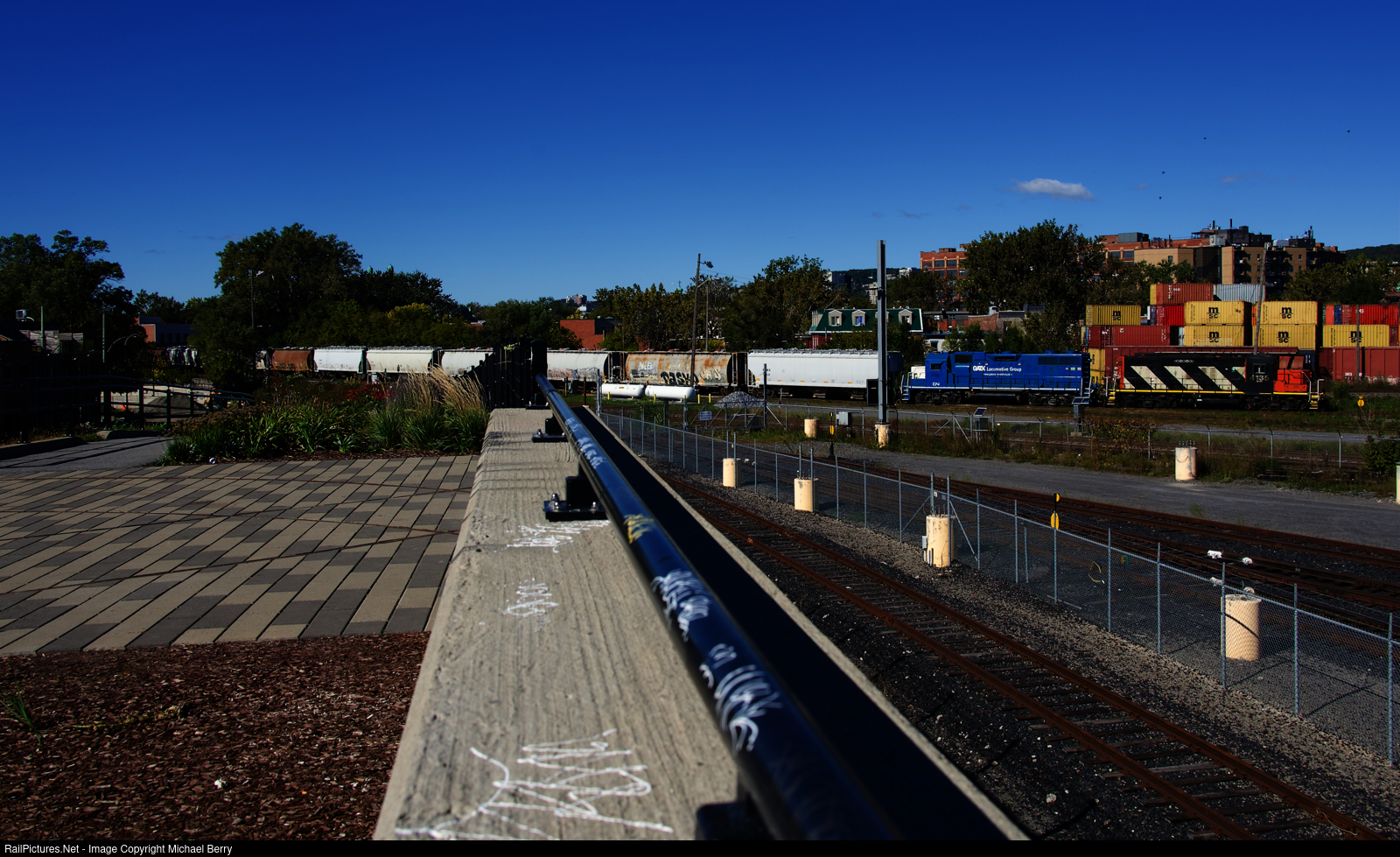 CN 4135 & CN 4904 is the power as the Pointe St-Charles Switcher heads towards the Port of Montreal. At left is a park that lets you see the rail action around here.