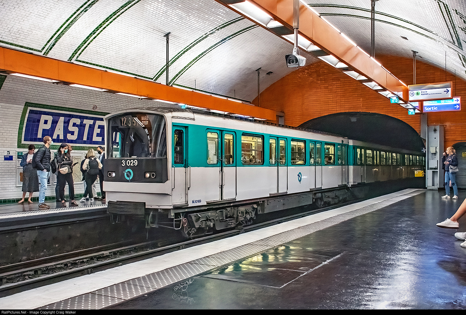 A Régie Autonome des Transports Parisiens (Self-Governance Paris Transport) 12 Line train, led by MF 67 car 3029, approaches its stop at the Pasteur Station. (Paris, France – September 10, 2022)
