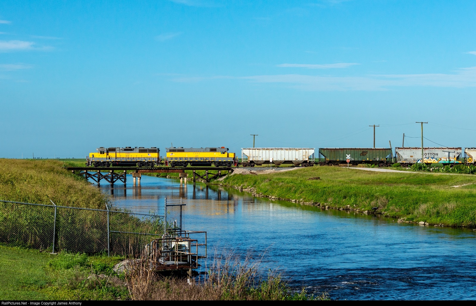 The SCFE Fort Peirce Turn is crossing the Miami Canal in Lake Harbor, Florida with consecutive numbered GP38s.